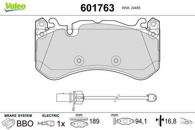 VALEO 601763 Kit de plaquettes de frein, frein à disque