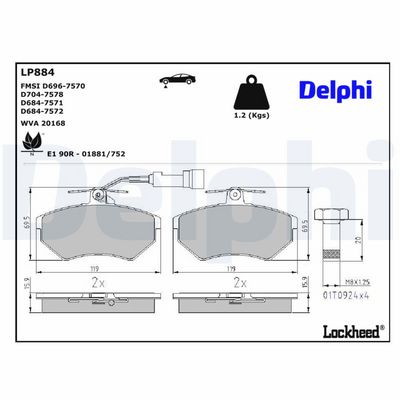 DELPHI LP884 Kit de plaquettes de frein, frein à disque