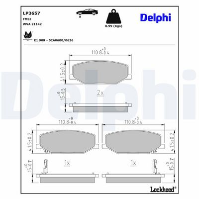 DELPHI LP3657 Kit de plaquettes de frein, frein à disque