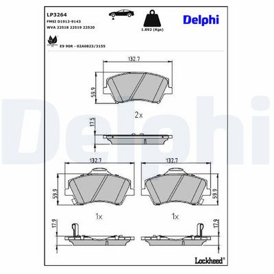 DELPHI LP3264 Kit de plaquettes de frein, frein à disque