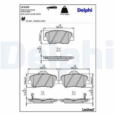 DELPHI LP3499 Kit de plaquettes de frein, frein à disque