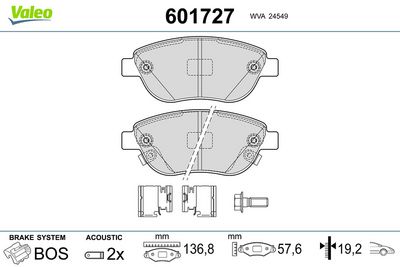 VALEO 601727 Kit de plaquettes de frein, frein à disque