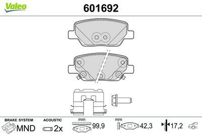 VALEO 601692 Kit de plaquettes de frein, frein à disque
