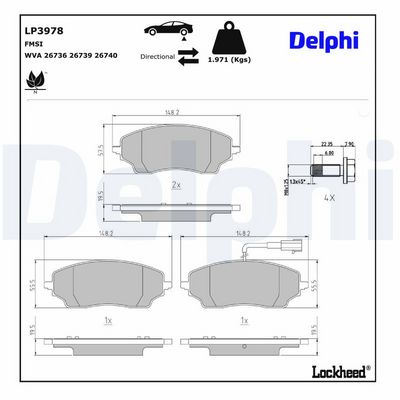 DELPHI LP3978 Kit de plaquettes de frein, frein à disque