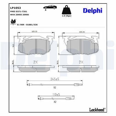 DELPHI LP1053 Kit de plaquettes de frein, frein à disque