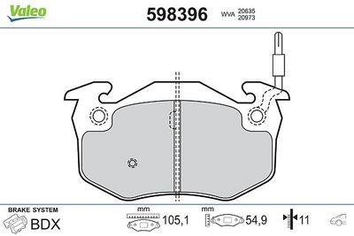 VALEO 598396 Kit de plaquettes de frein, frein à disque