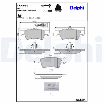 DELPHI LP2087LC Kit de plaquettes de frein, frein à disque