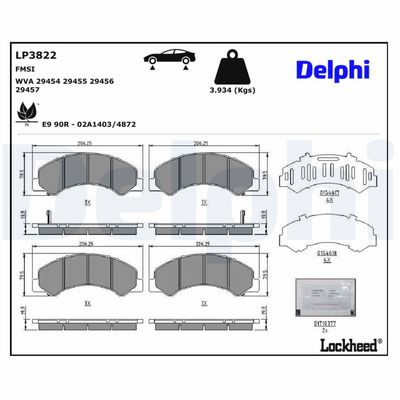DELPHI LP3822 Kit de plaquettes de frein, frein à disque