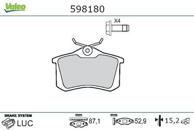 VALEO 598180 Kit de plaquettes de frein, frein à disque