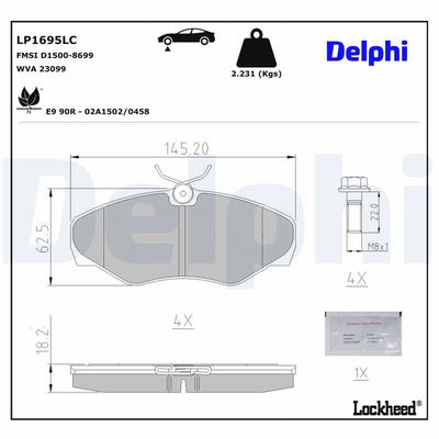 DELPHI LP1695LC Kit de plaquettes de frein, frein à disque