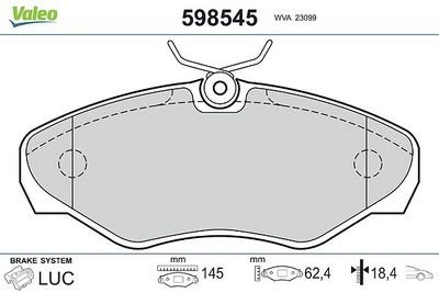 VALEO 598545 Kit de plaquettes de frein, frein à disque