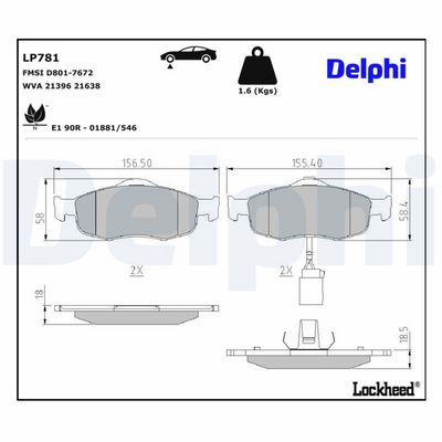 DELPHI LP781 Kit de plaquettes de frein, frein à disque