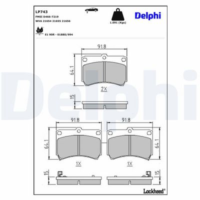 DELPHI LP743 Kit de plaquettes de frein, frein à disque