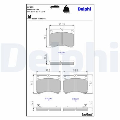 DELPHI LP935 Kit de plaquettes de frein, frein à disque