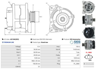 AS-PL Alternateur A01346(SEG) SEG Automotive