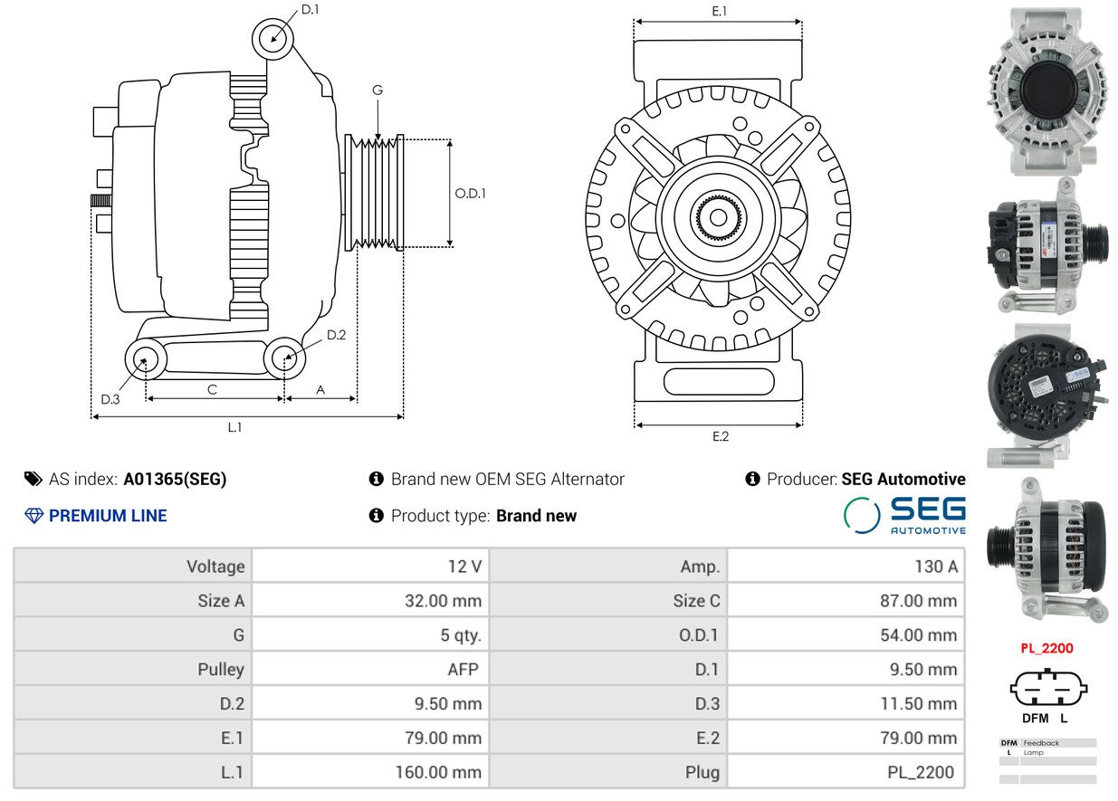 AS-PL Alternateur A01365(SEG) SEG Automotive