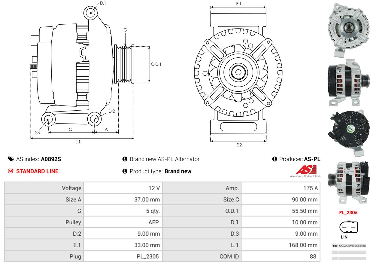 AS-PL Alternateur A0892S AS