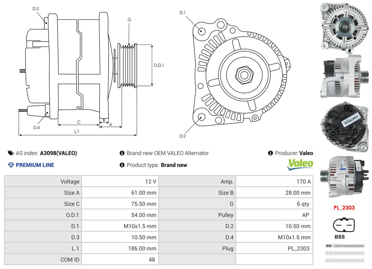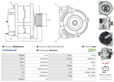AS-PL Alternateur A3098(VALEO) Valeo