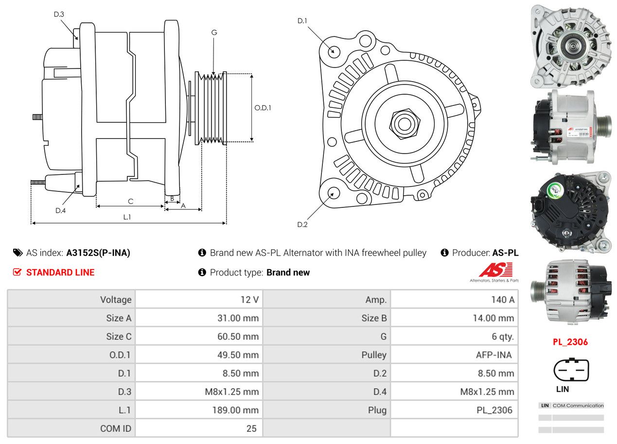 AS-PL Alternateur A3152S(P-INA) AS