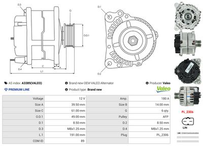 AS-PL Alternateur A3389(VALEO) Valeo