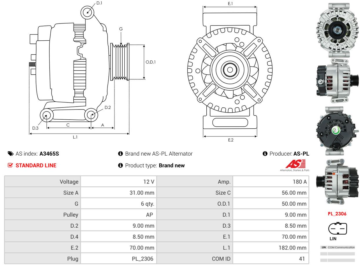 AS-PL Alternateur A3465S AS