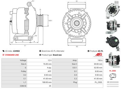 AS-PL Alternateur A3496S AS