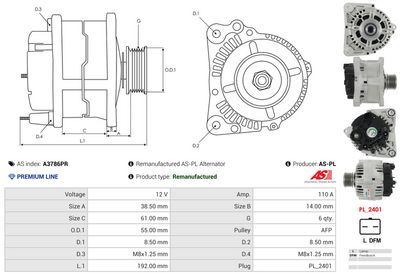AS-PL Alternateur A3786PR Remis � neuf AS