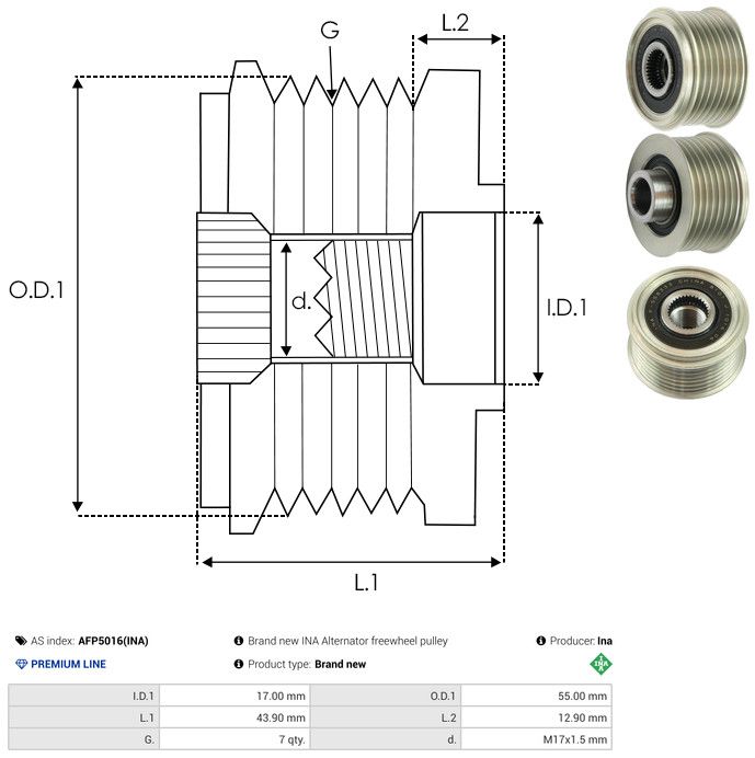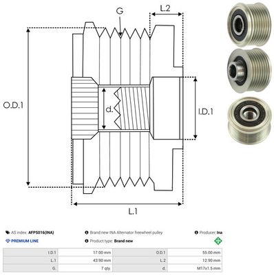 AS-PL Poulie roue libre, alternateur AFP5016(INA) Ina
