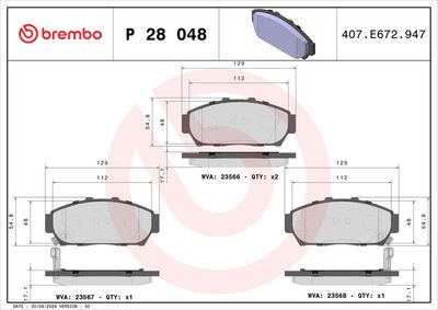 BREMBO Kit de plaquettes de frein, frein à disque P 28 048 PRIME LINE