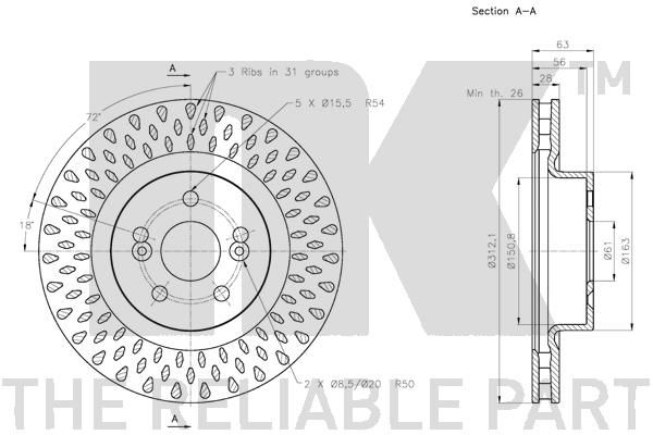 • Diametro esterno: 312 mm