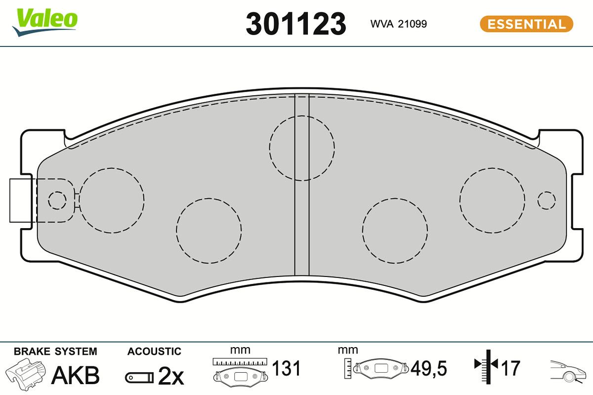 VALEO Kit pastiglie freno, Freno a disco 301123 ESSENTIAL