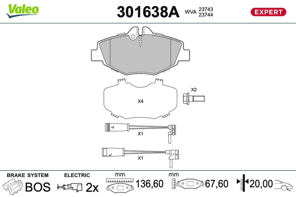 VALEO Kit pastiglie freno, Freno a disco 301638A EXPERT