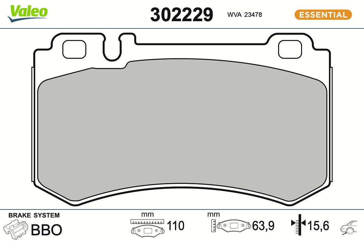 VALEO Kit pastiglie freno, Freno a disco 302229 ESSENTIAL