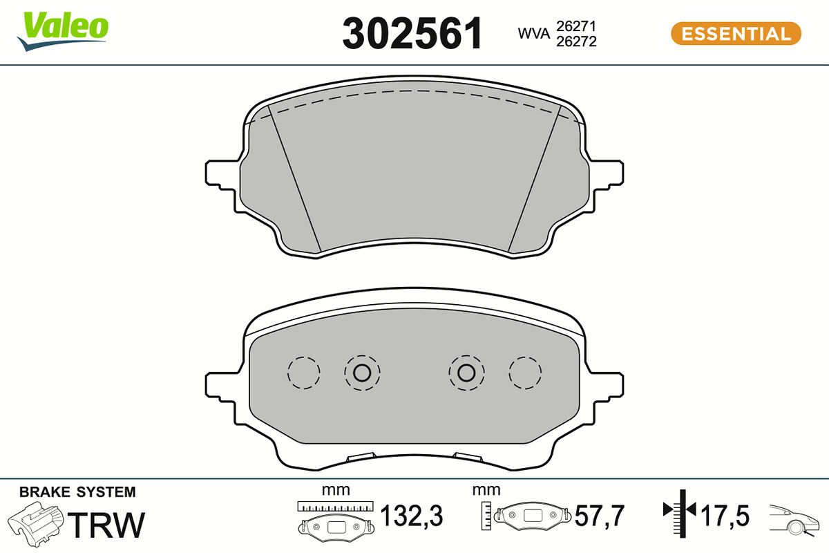 VALEO Kit pastiglie freno, Freno a disco 302561 ESSENTIAL