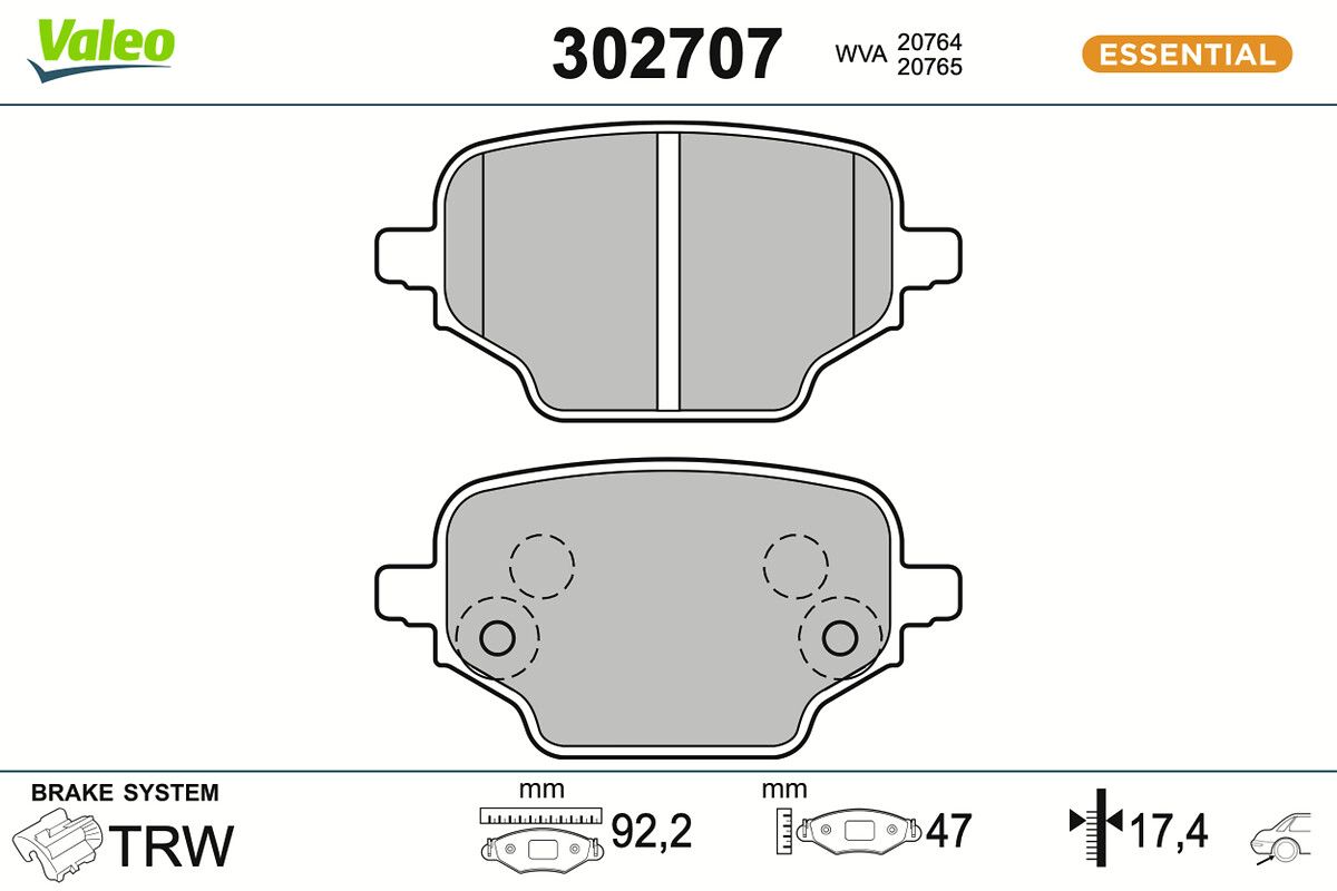 VALEO Kit pastiglie freno, Freno a disco 302707 ESSENTIAL