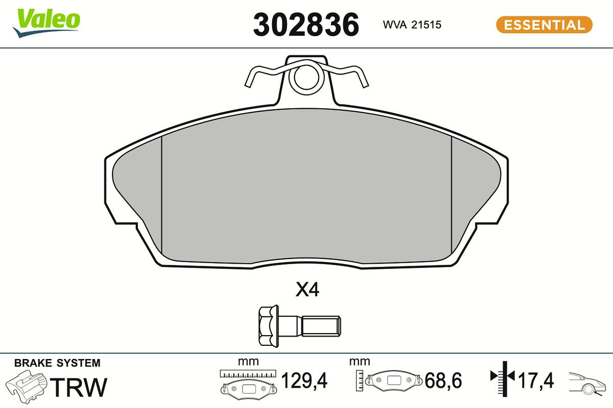 VALEO Kit pastiglie freno, Freno a disco 302836 ESSENTIAL