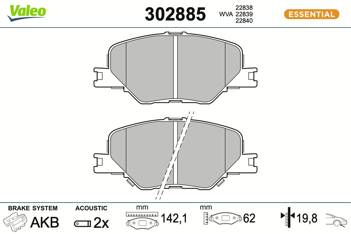 VALEO Kit pastiglie freno, Freno a disco 302885 ESSENTIAL