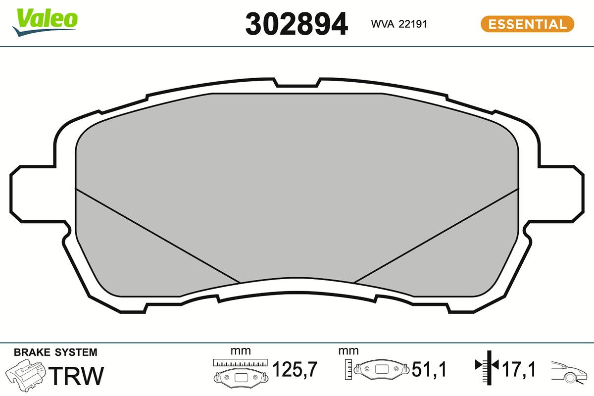VALEO Kit pastiglie freno, Freno a disco 302894 ESSENTIAL