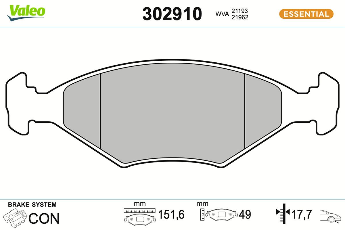 VALEO Kit pastiglie freno, Freno a disco 302910 ESSENTIAL