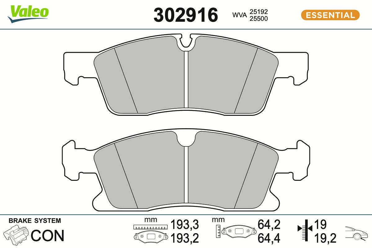 VALEO Kit pastiglie freno, Freno a disco 302916 ESSENTIAL
