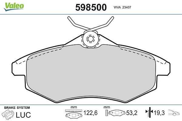 VALEO Kit pastiglie freno, Freno a disco 598500