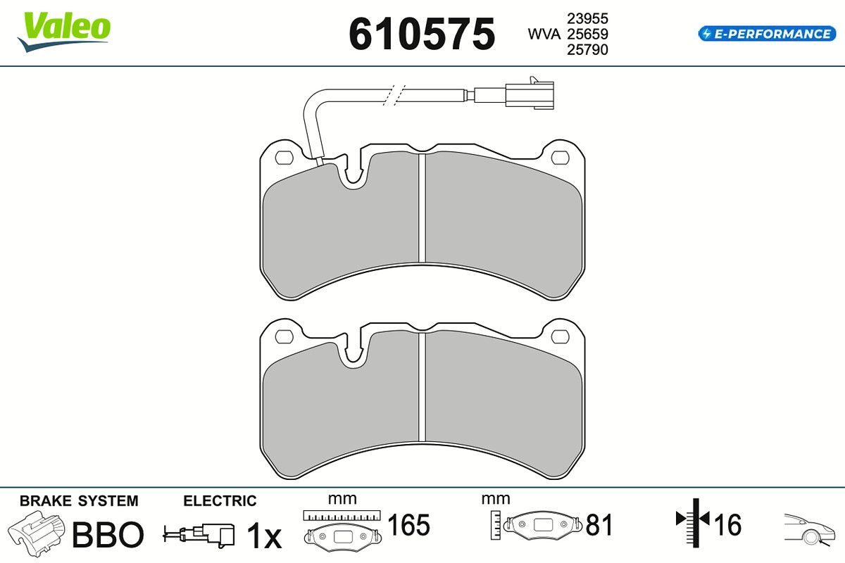 VALEO Kit pastiglie freno, Freno a disco 610575 E-PERFORMANCE