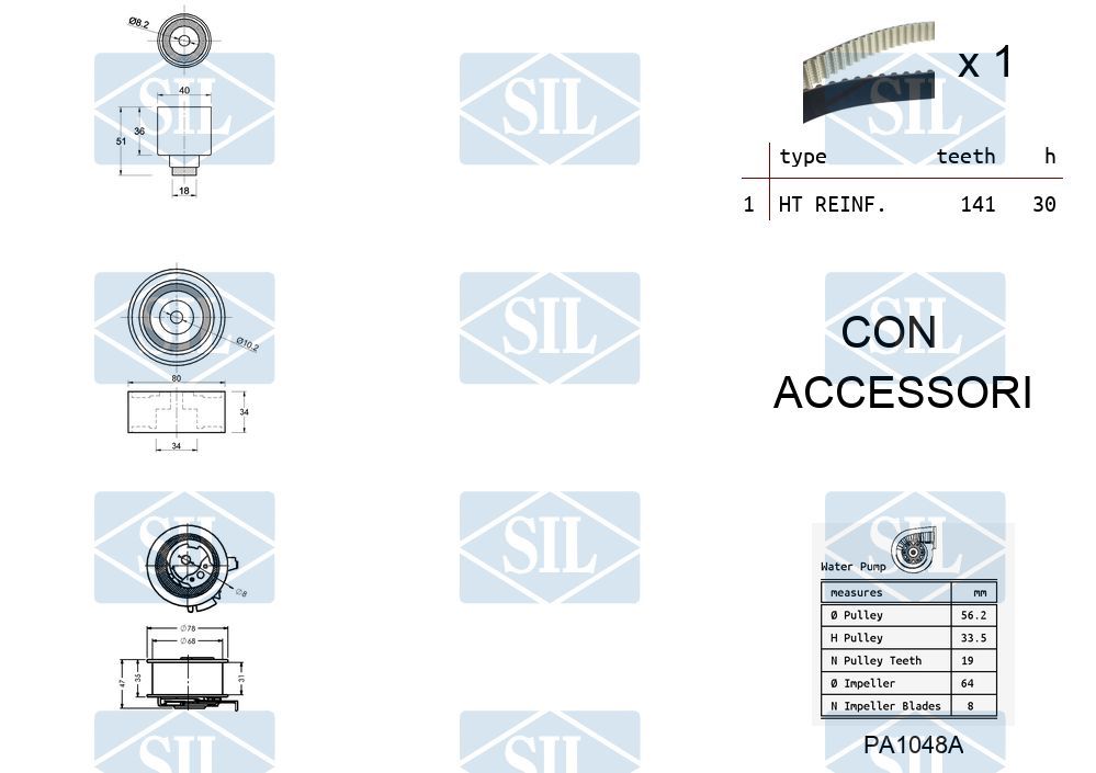 Saleri SIL Pompa acqua + Kit cinghie dentate K1PA1048A