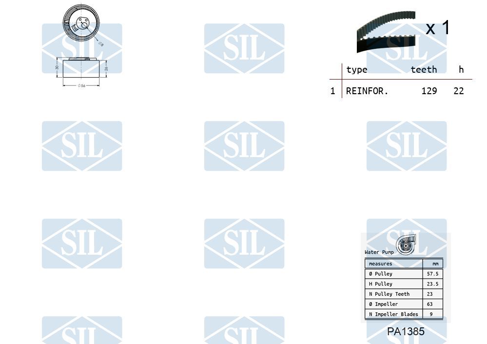 Saleri SIL Pompa acqua + Kit cinghie dentate K1PA1385