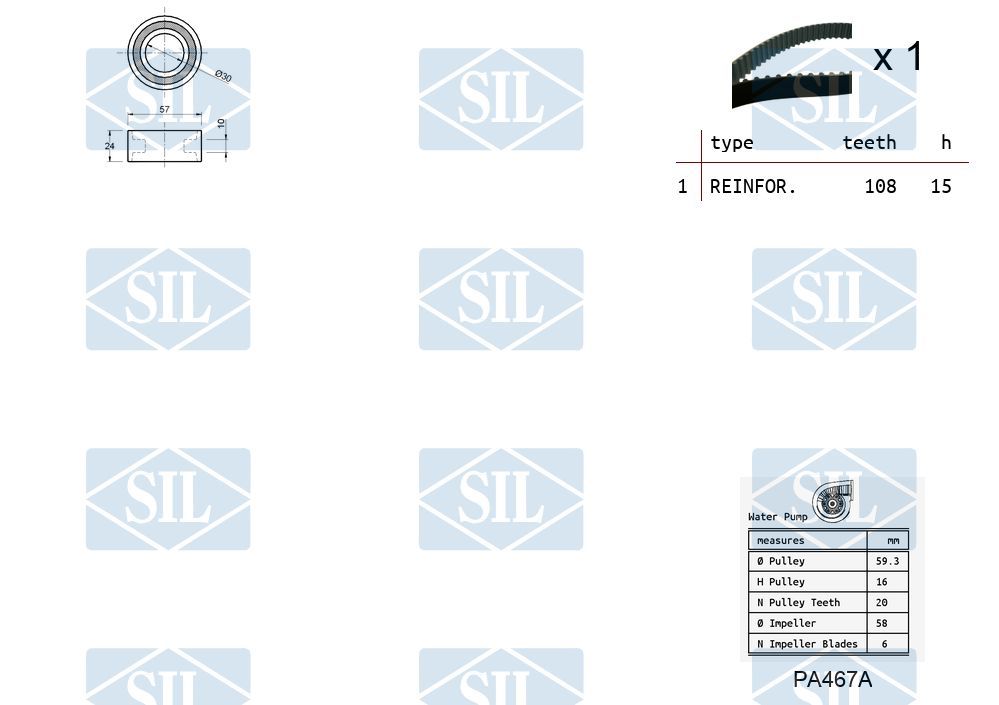 Saleri SIL Pompa acqua + Kit cinghie dentate K2PA467A