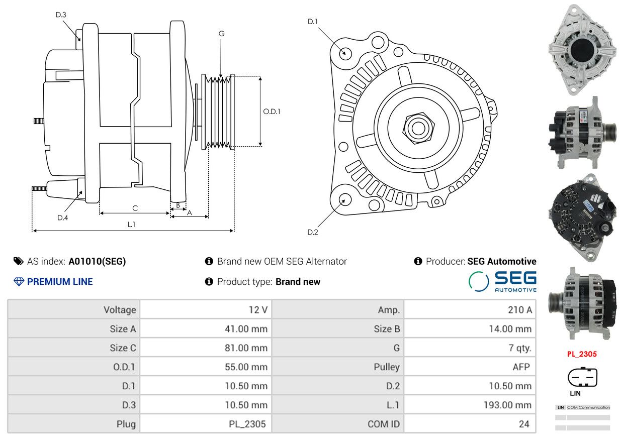 AS-PL Alternatore A01010(SEG) SEG Automotive