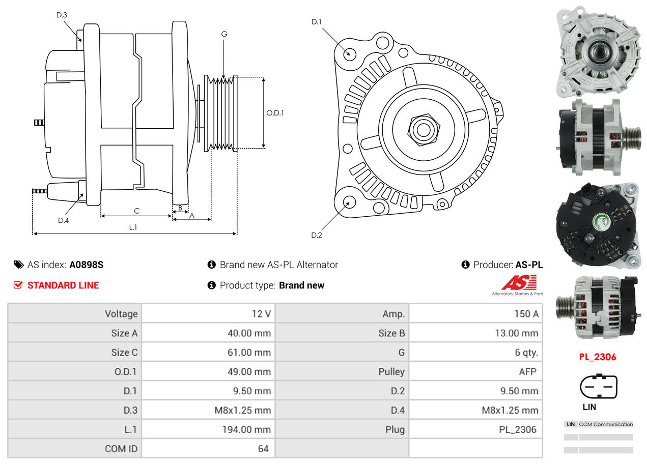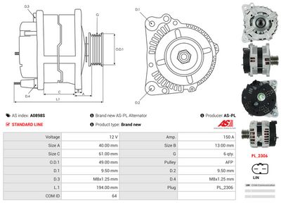 AS-PL Alternatore A0898S AS