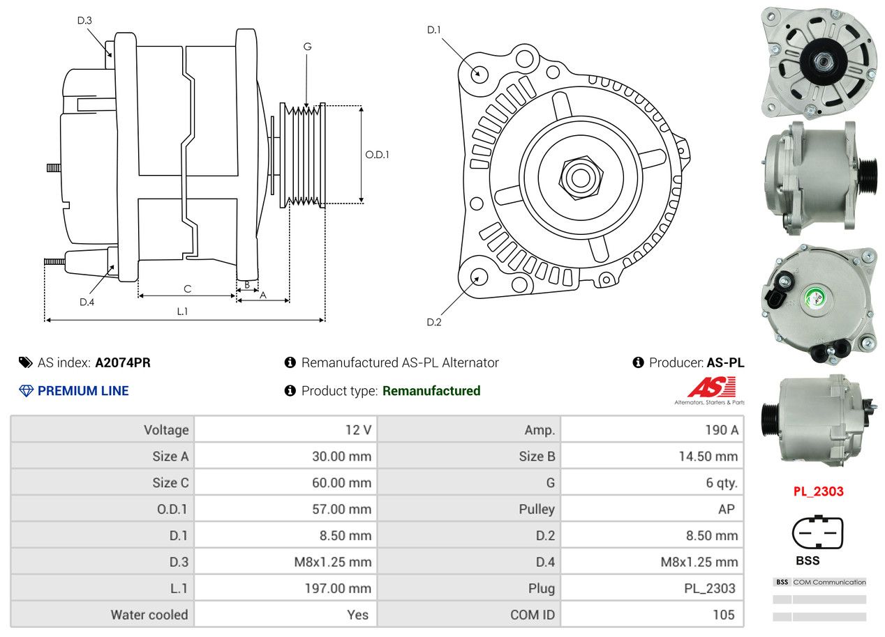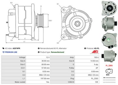 AS-PL Alternatore A2074PR Rigenerato AS