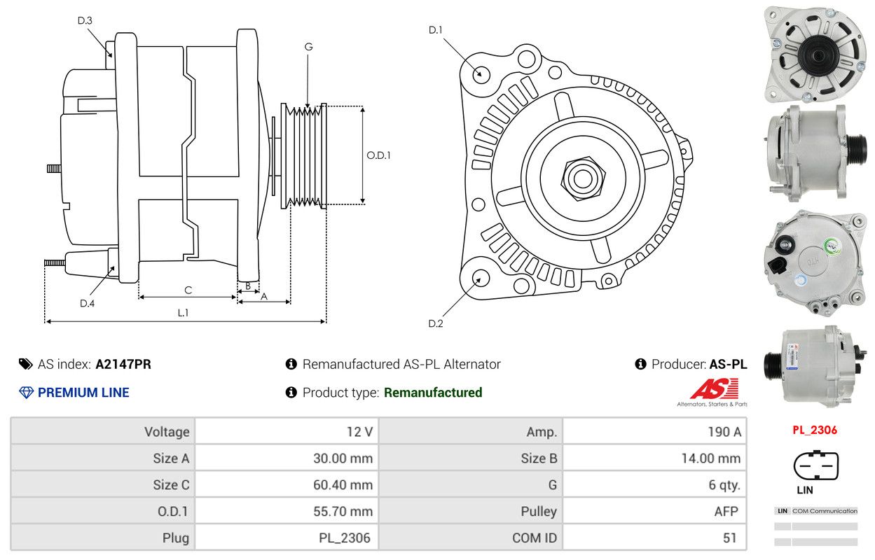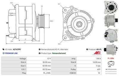 AS-PL Alternatore A2147PR Rigenerato AS