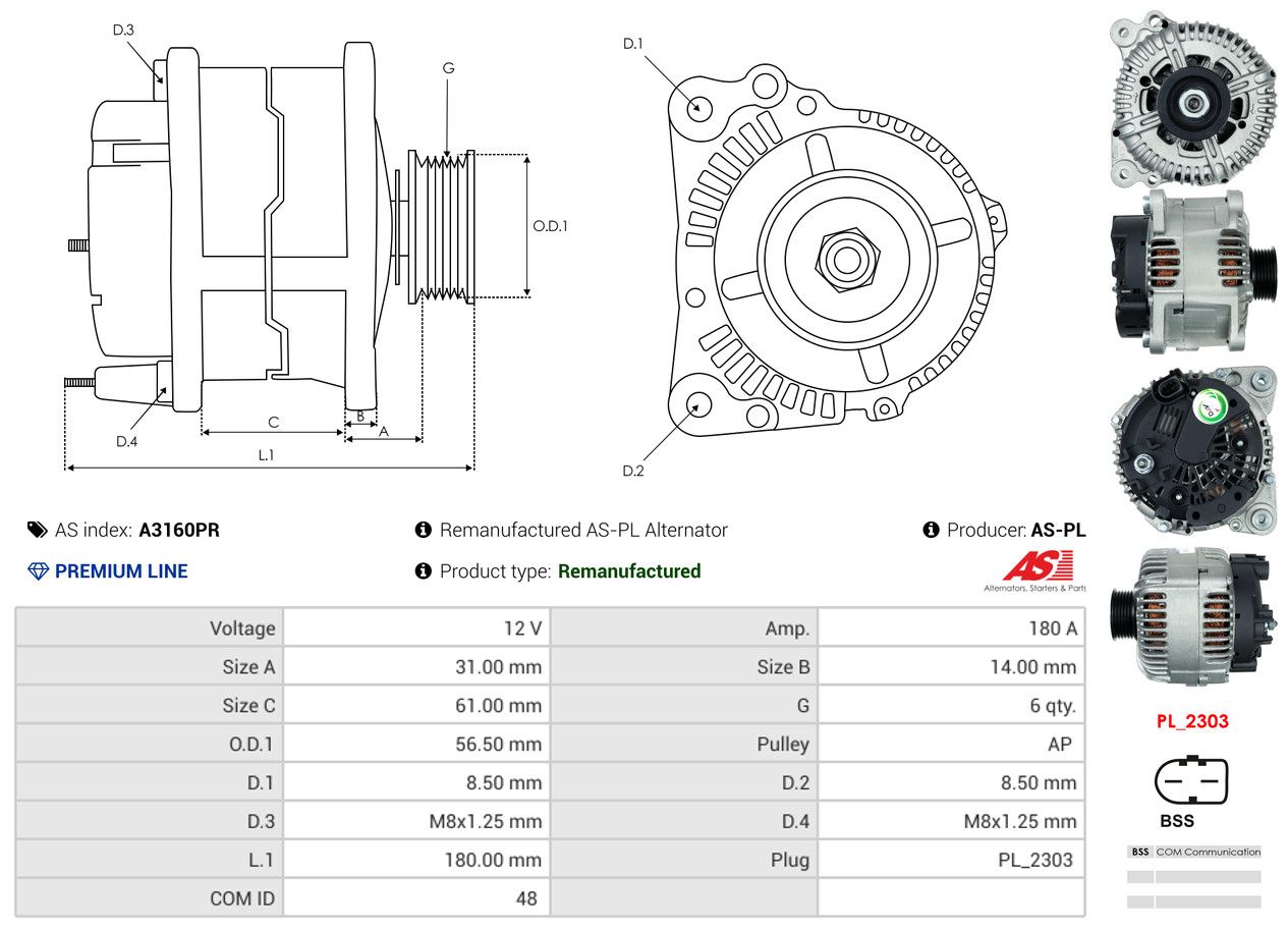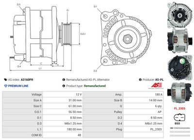 AS-PL Alternatore A3160PR Rigenerato AS-PL